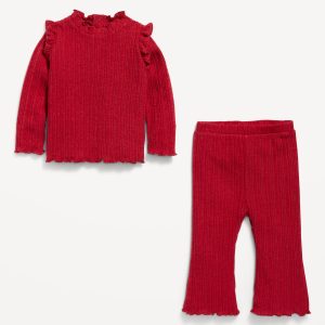 Cozy Long-Sleeve Ribbed Ruffle-Trim Top and Pants Set for Baby