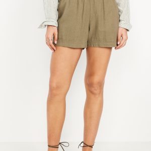 High-Waisted Linen-Blend Shorts — 3.5-inch inseam