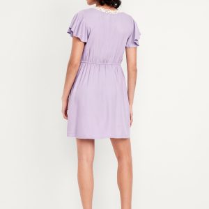 Fit & Flare Crepe Lace-Trim Mini Dress