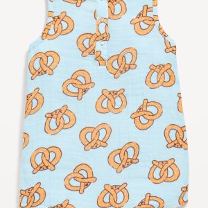 Printed Sleeveless Double-Weave Henley One-Piece Romper for Baby