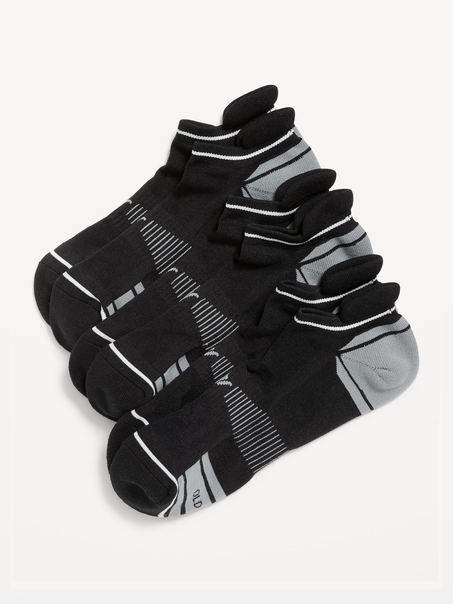 3-Pack Athletic Ankle Run Socks for Men: pack includes 3 pairs of performance socks, rib-knit openings, arch support, zoned cushioning, notched toe seams, go-dry wicks moisture, #764084
