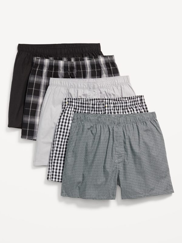 5-Pack Soft-Washed Boxer Shorts — 3.75-inch inseam: elasticized waist, fly front, pack includes five boxers in different colors or prints, #855658