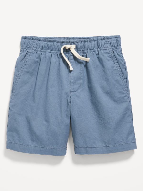 Above Knee Twill Pull-On Shorts for Boys: elasticized waistband, functional drawstring, faux fly, diagonal on-seam pockets, single welt pocket at back, easy pull-on style, #860738