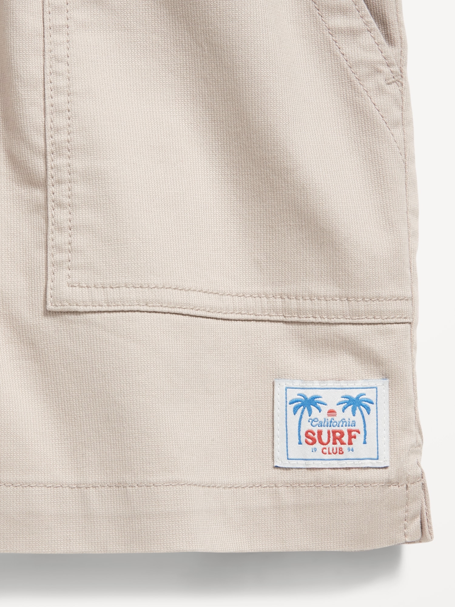 Above Knee Workwear Pull-On Shorts for Boys: elastic-drawstring waist, diagonal front pockets, button-flap back right pocket, pull-on style, #766372