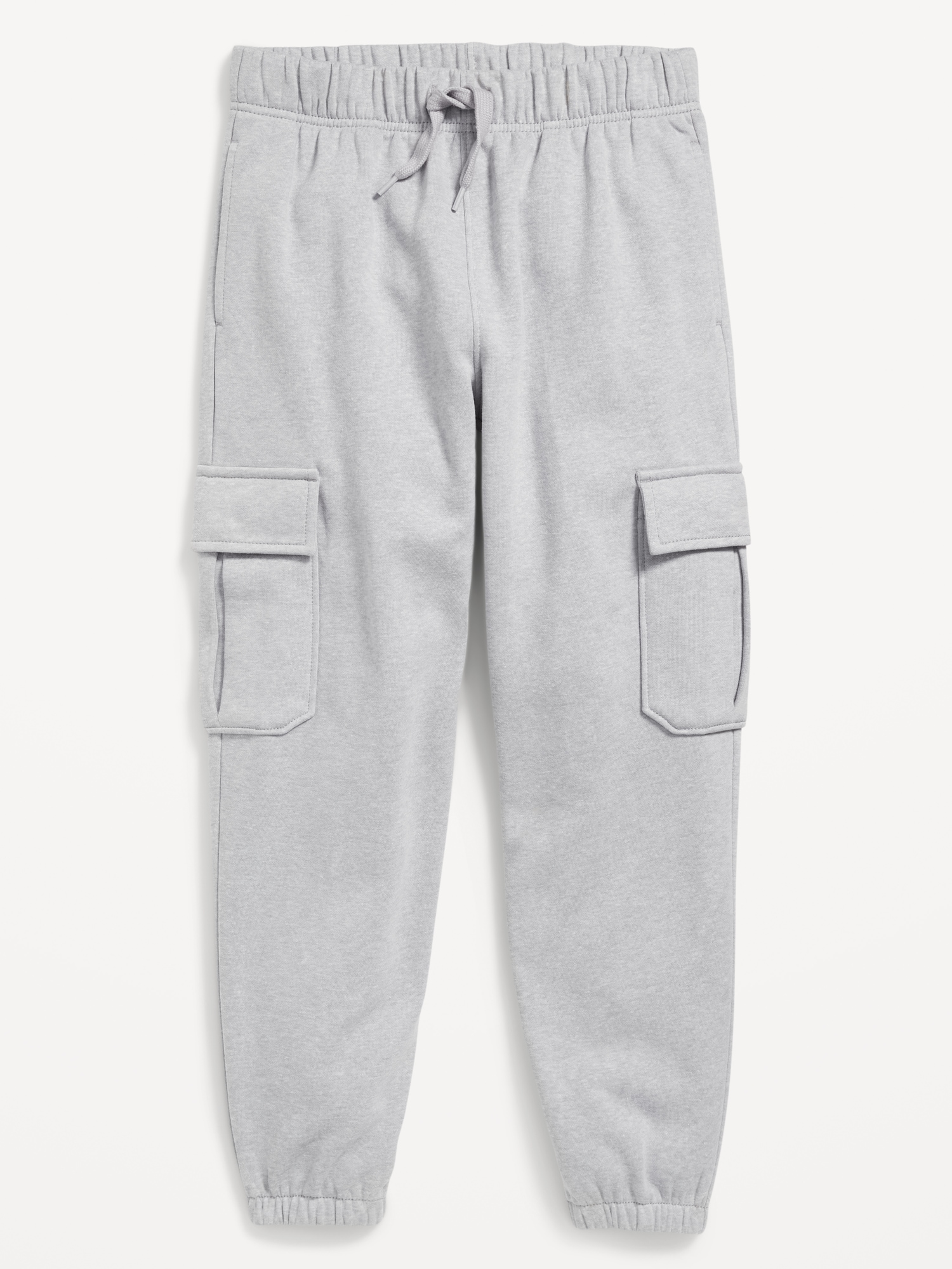 Baggy Cargo Jogger Sweatpants for Boys: elasticized waist, functional drawstring, on-seam welt pockets, snap-button cargo pockets, cinched leg cuffs, #564944
