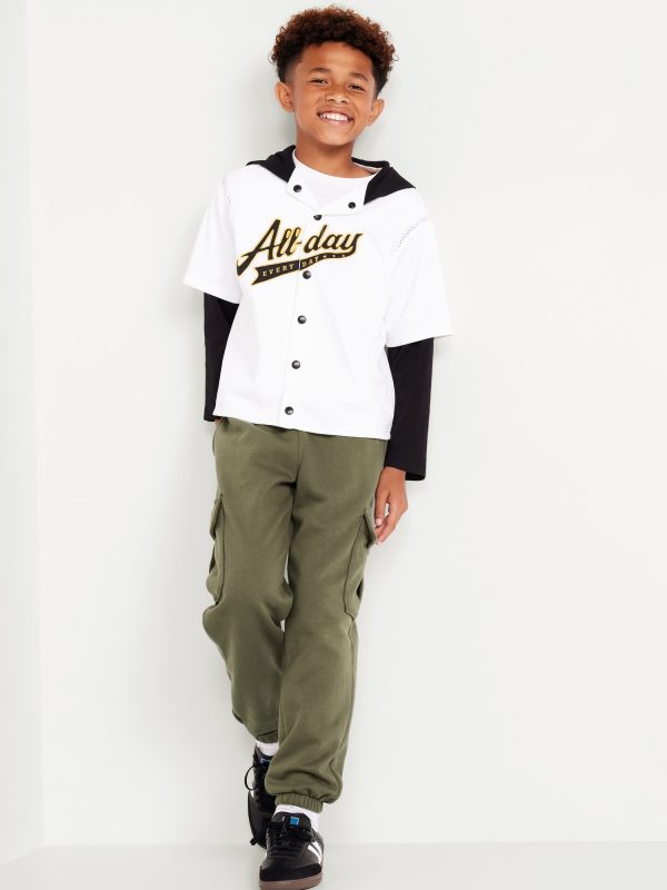 Baggy Cargo Jogger Sweatpants for Boys: elasticized waist, functional drawstring, on-seam pockets, cinched leg cuffs, #511180