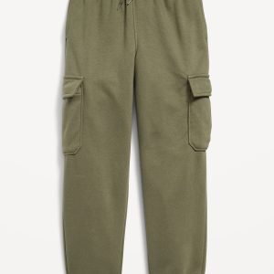 Baggy Cargo Jogger Sweatpants for Boys: elasticized waist, functional drawstring, on-seam welt pockets, snap-button cargo pockets, cinched leg cuffs, #564944