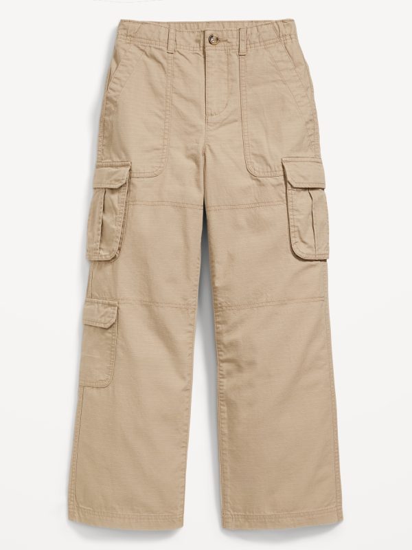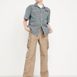 Baggy Cargo Ripstop Pants for Boys: interior adjustable waistband, regular button closure, zip fly, slanted side pockets, adhesive secure flap cargo pockets, patch pockets at back, #766354