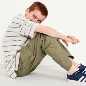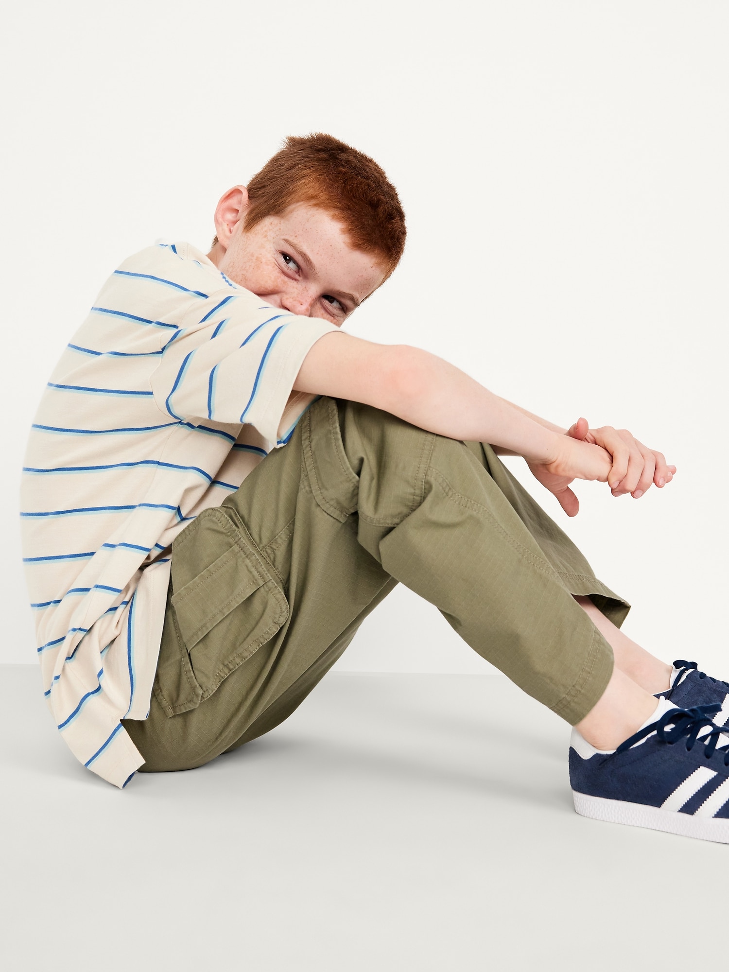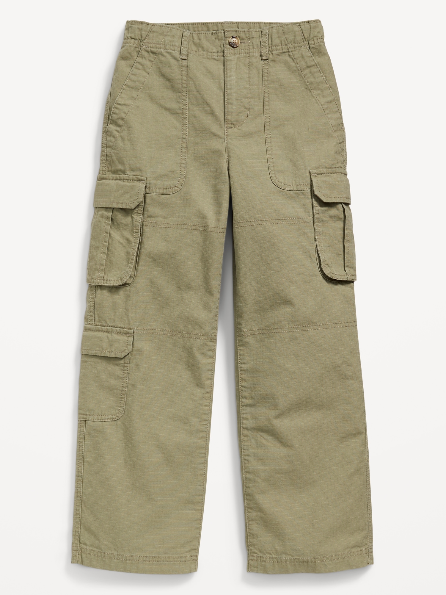 Baggy Cargo Ripstop Pants for Boys: interior adjustable waistband, regular button closure, zip fly, slanted side pockets, adhesive secure flap cargo pockets, patch pockets at back, #766354