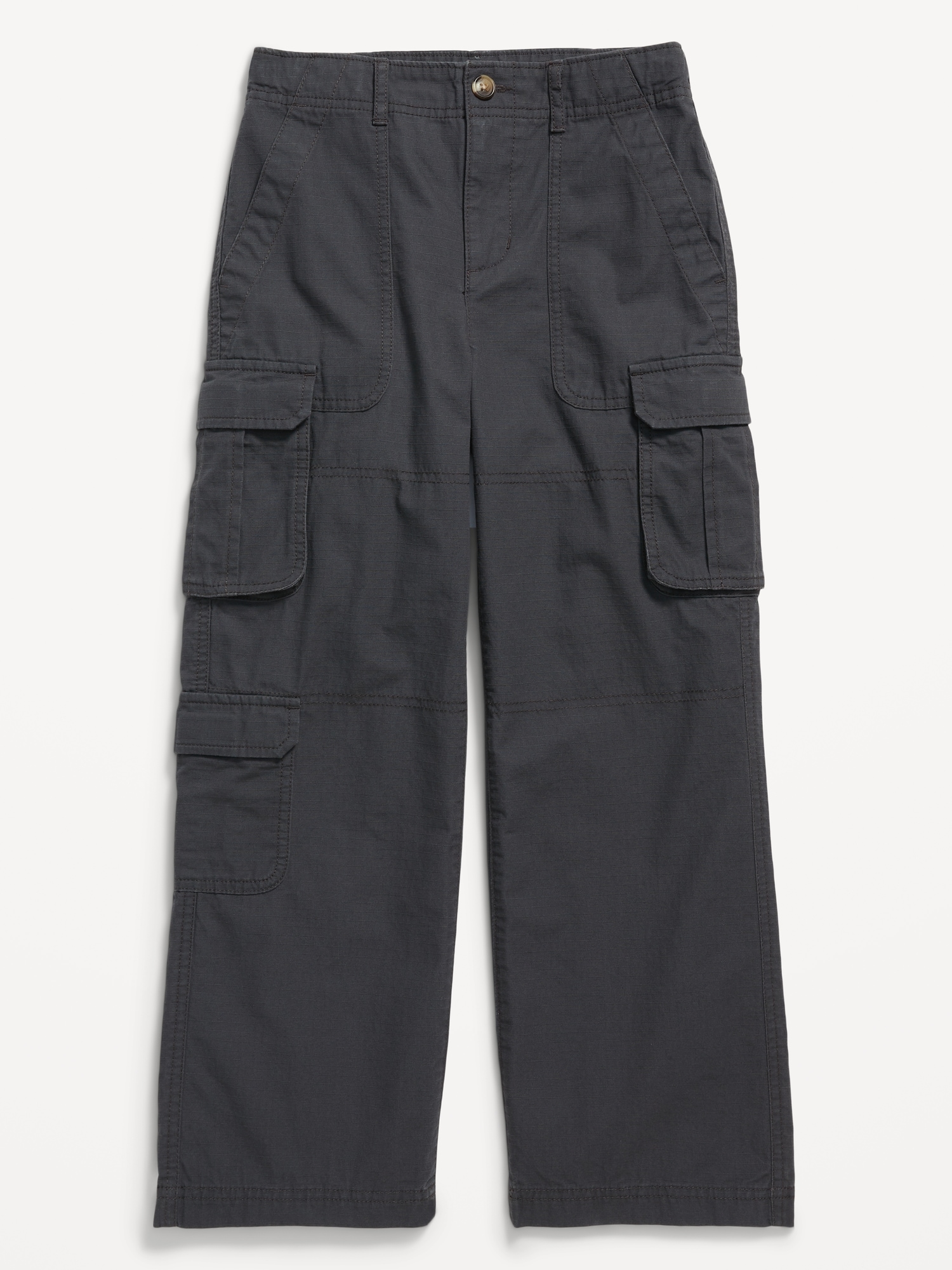 Baggy Cargo Ripstop Pants for Boys: interior adjustable waistband, regular button closure, zip fly, slanted side pockets, adhesive secure flap cargo pockets, patch pockets at back, #766354