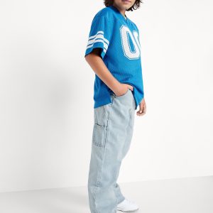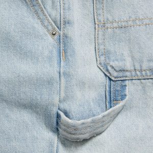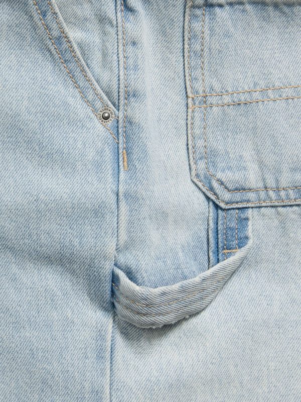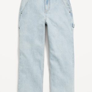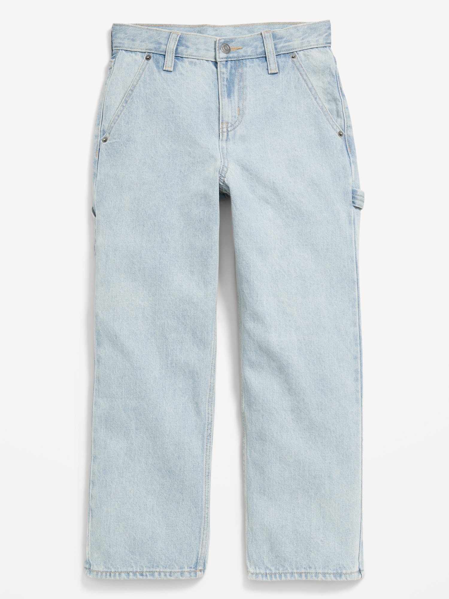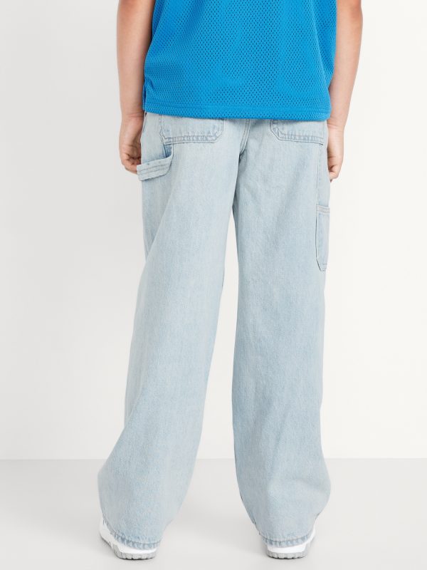 Baggy Carpenter Jeans for Boys: interior adjustable waistband, sizes 5-8 snap-button closure, regular button closure sizes 10-20, zip fly, diagonal pockets, utility patch pockets at back, built-in hammer loop at left leg, #805572
