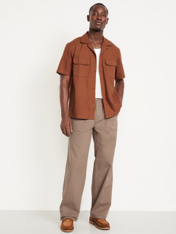 Baggy Soft Workwear Pants: Relaxed from hip to ankle with a laid-back attitude.elasticized drawstring waistband, button-front waist, zip fly, front utility pockets, back button-flap pockets, #751382