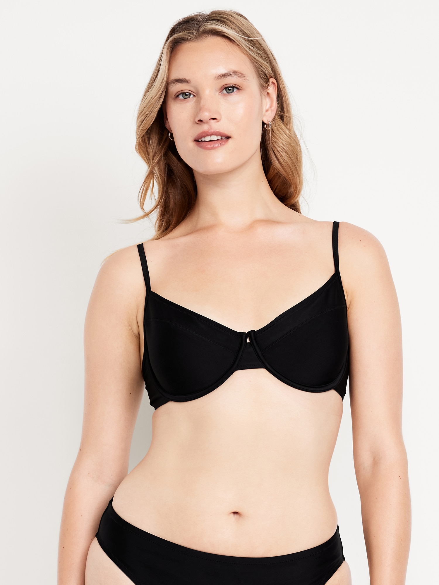 Balconette Swim Top: adjustable straps, underwire support, removable pads, back clasp, #798210