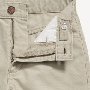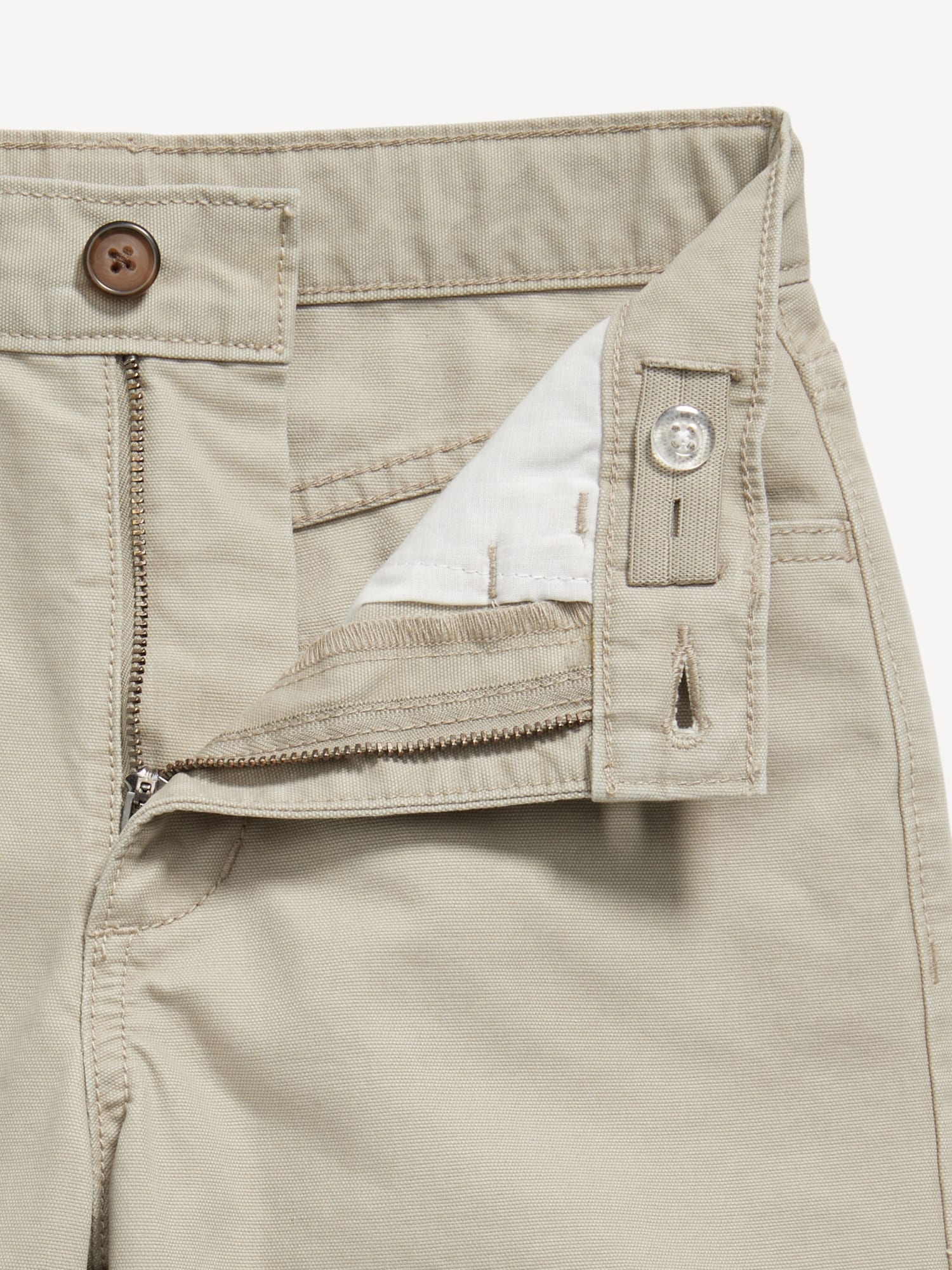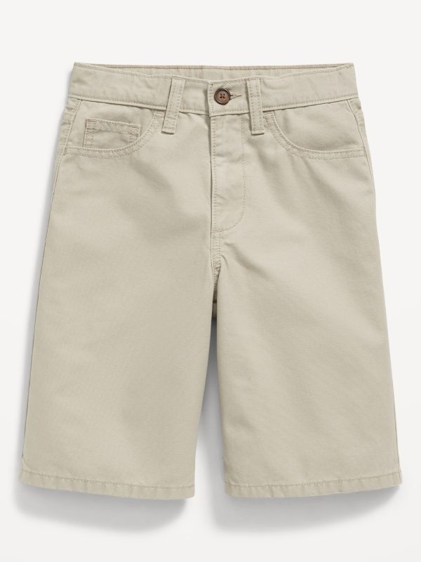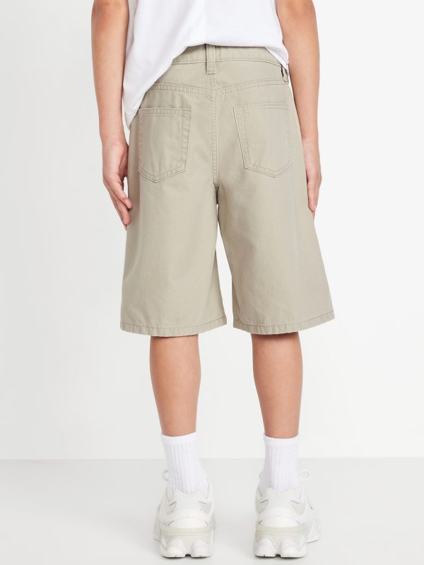 Below Knee Baggy Canvas Shorts for Boys: interior adjustable waistband, regular button closure, zip fly, scoop pockets and coin pocket in front, patch pockets in back, below knee, #766370