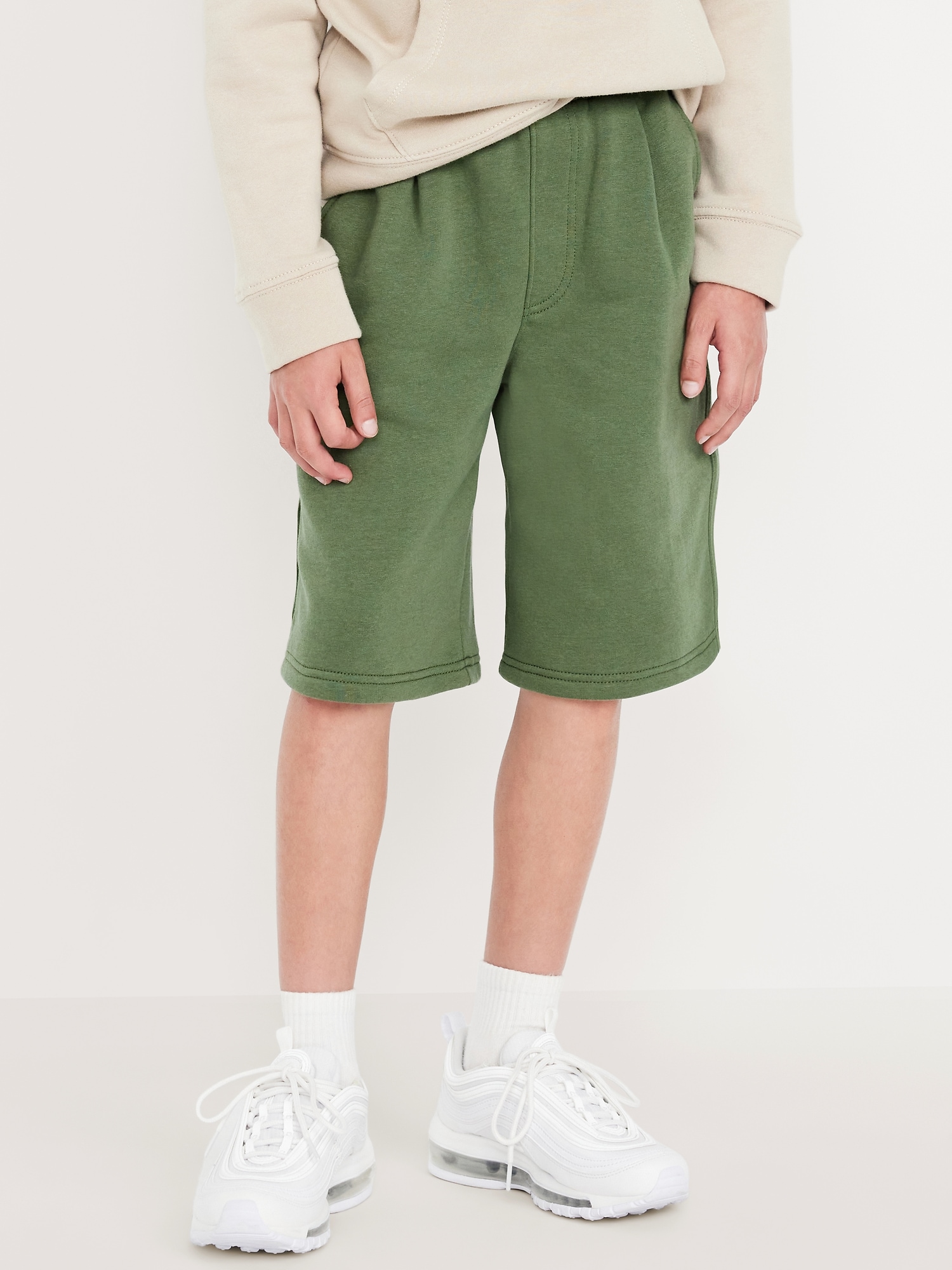 Below Knee Baggy Fleece Shorts for Boys: elasticized waistband, functional drawstring, diagonal on-seam pockets, single patch pocket at back, #805560