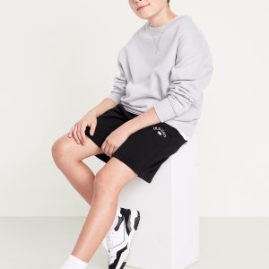 Below Knee Fleece Jogger Shorts for Boys: elasticized waistband, interior drawstring, on-seam welt pockets, #685948