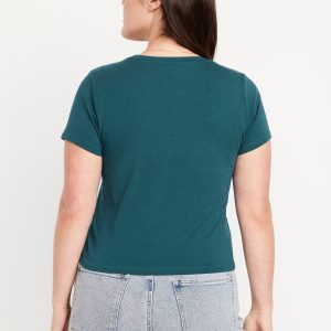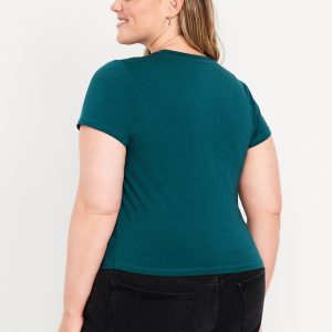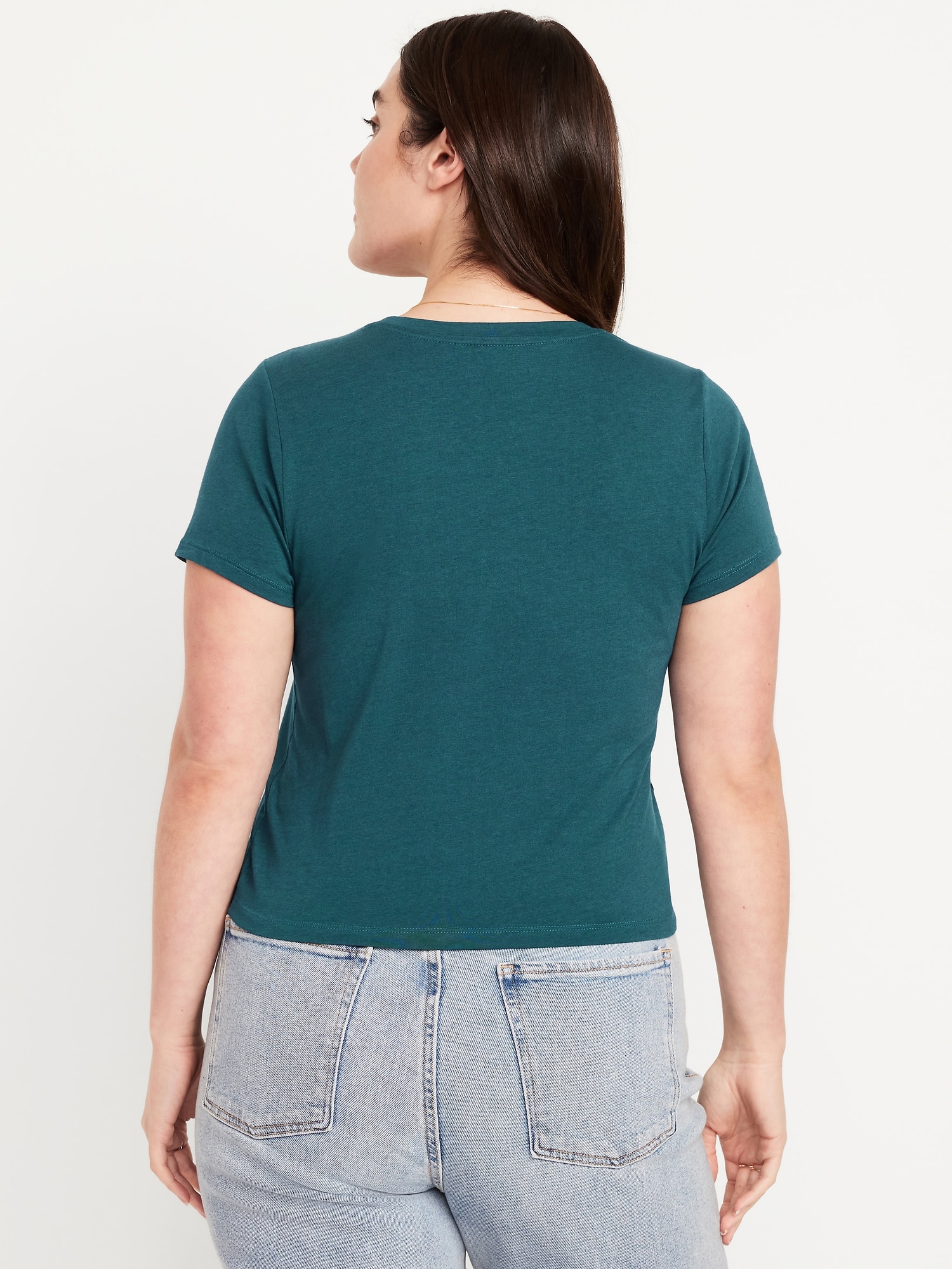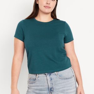 Bestee Crop T-Shirt: A classic, slim fit that’s instantly polished.rib-knit crew neck, short sleeves, #537378