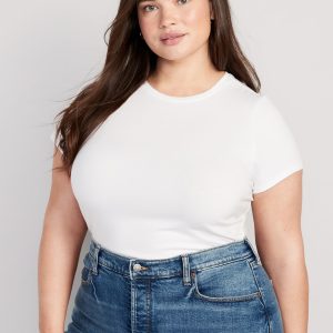 Bestee Crop T-Shirt: A classic, slim fit that’s instantly polished.rib-knit crew neck, short sleeves, #537378
