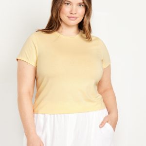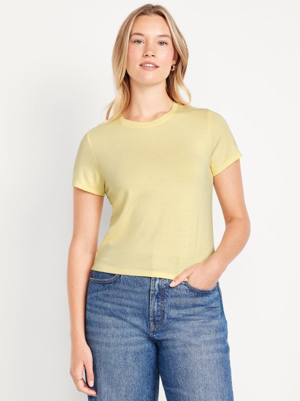 Bestee Crop T-Shirt: A classic, slim fit that’s instantly polished.rib-knit crew neck, short sleeves, #537378