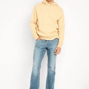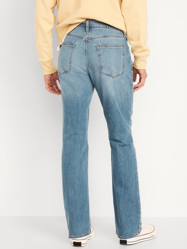 Boot-Cut Built-In Flex Jeans: Relaxed through the hip, wide below the knee.button front, whiskering and fading, zip fly, front scoop pockets, back patch pockets, #564925