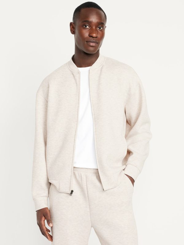 Bounce Fleece Oversized Bomber Jacket: banded collar, long drop-shoulder sleeves, full-zip front, vertical welt pockets, #787948