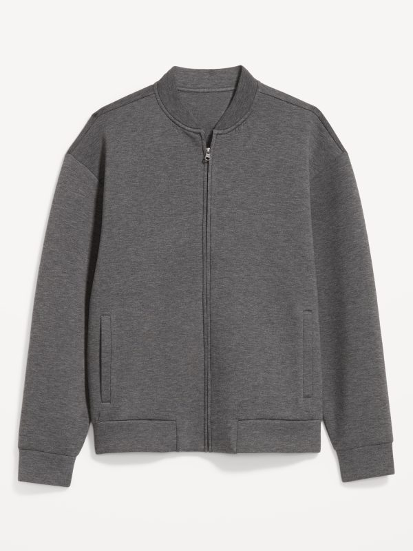 Bounce Fleece Oversized Bomber Jacket: banded collar, long drop-shoulder sleeves, full-zip front, vertical welt pockets, #787948