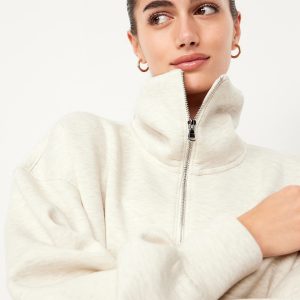 Bounce Fleece Zip Jacket: Featuring Bounce Fleece. A smooth, cooling finish that feels good and looks chic everywhere you go.mock neck, long drop-shoulder sleeves, on-seam pockets, full-zip front, breathable, #805759