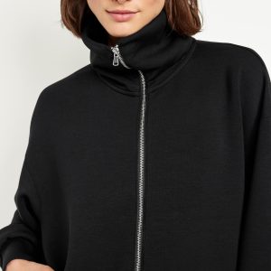 Bounce Fleece Zip Jacket: Featuring Bounce Fleece. A smooth, cooling finish that feels good and looks chic everywhere you go.mock neck, long drop-shoulder sleeves, on-seam pockets, full-zip front, breathable, #805759