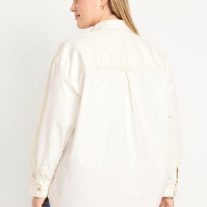 Boyfriend Button-Down Jean Tunic: spread collar, long sleeves with buttoned cuffs, patch chest pocket, full-button front, #800071