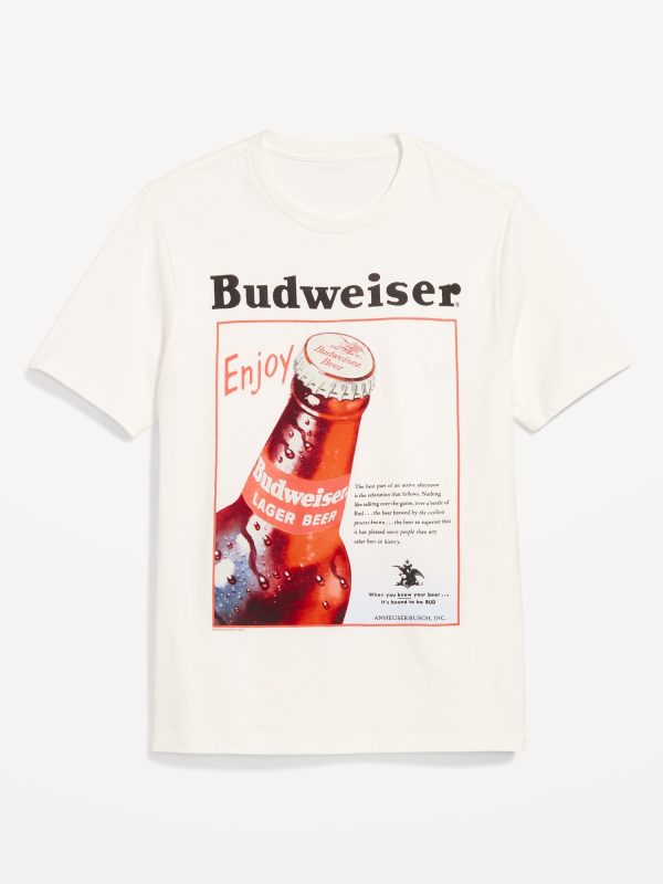 Budweiser© T-Shirt: rib-knit crew neck, short sleeves, licensed beer graphic, ©2025 Miller Brewing Co., Milwaukee, WI • BEER, #751689