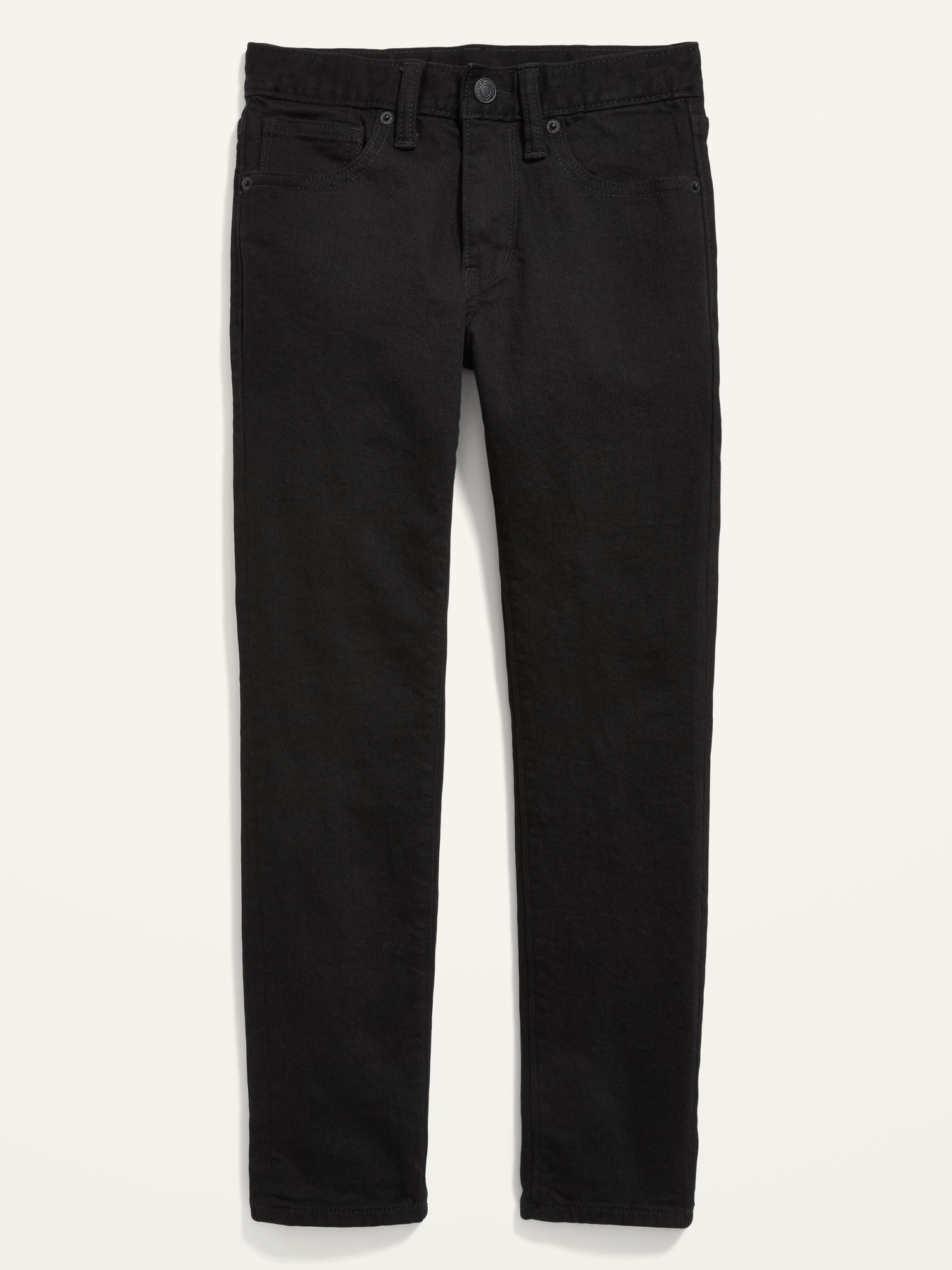 Built-In Flex Black Skinny Jeans For Boys: Comfy, durable, wear-on-repeat faves., Interior adjustable waistband expands for a perfect fit., Snap-button closure in sizes 5-8; regular button closure in sizes 10-18., Button closure and zip fly., Riveted scoop pockets and coin pocket in front; patch pockets in back., Fading at thigh creates a lived-in look., Engineered with innovative Built-In Flex stretch technology. Equal parts comfort & movement., Built-In Tough fabric has 2x the strength of regular denim!, Durable medium-wash denim, with comfortable stretch and contrast topstitching., We’ve updated the fabric content on select colors & patterns of this style. Select inventory may reflect a slightly different fabric content of 91% cotton, 7% recycled cotton, 2% spandex., #723743