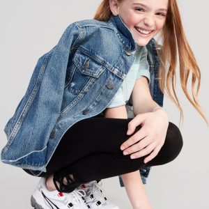 Built-In Tough Full-Length Lattice-Hem Leggings for Girls