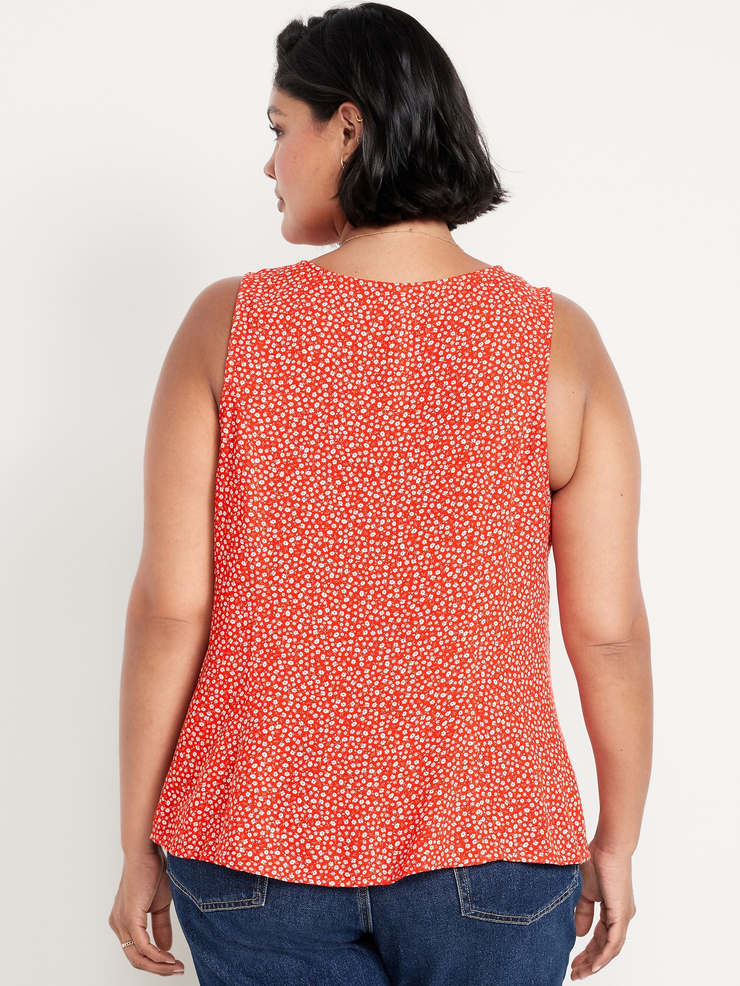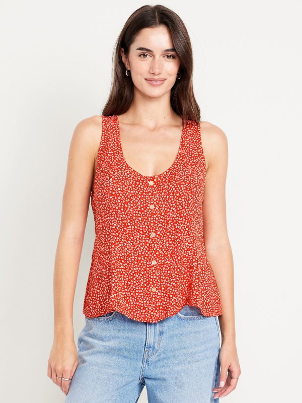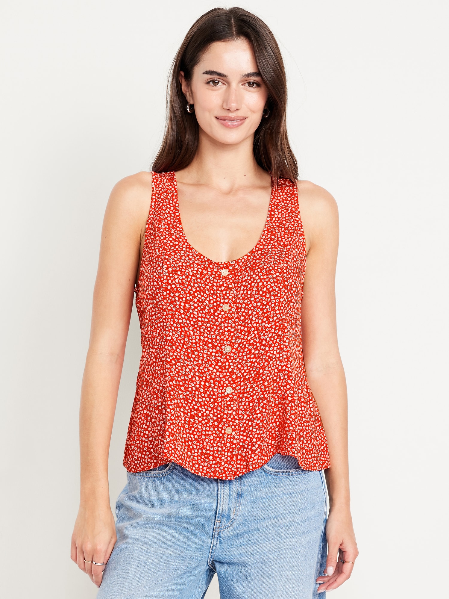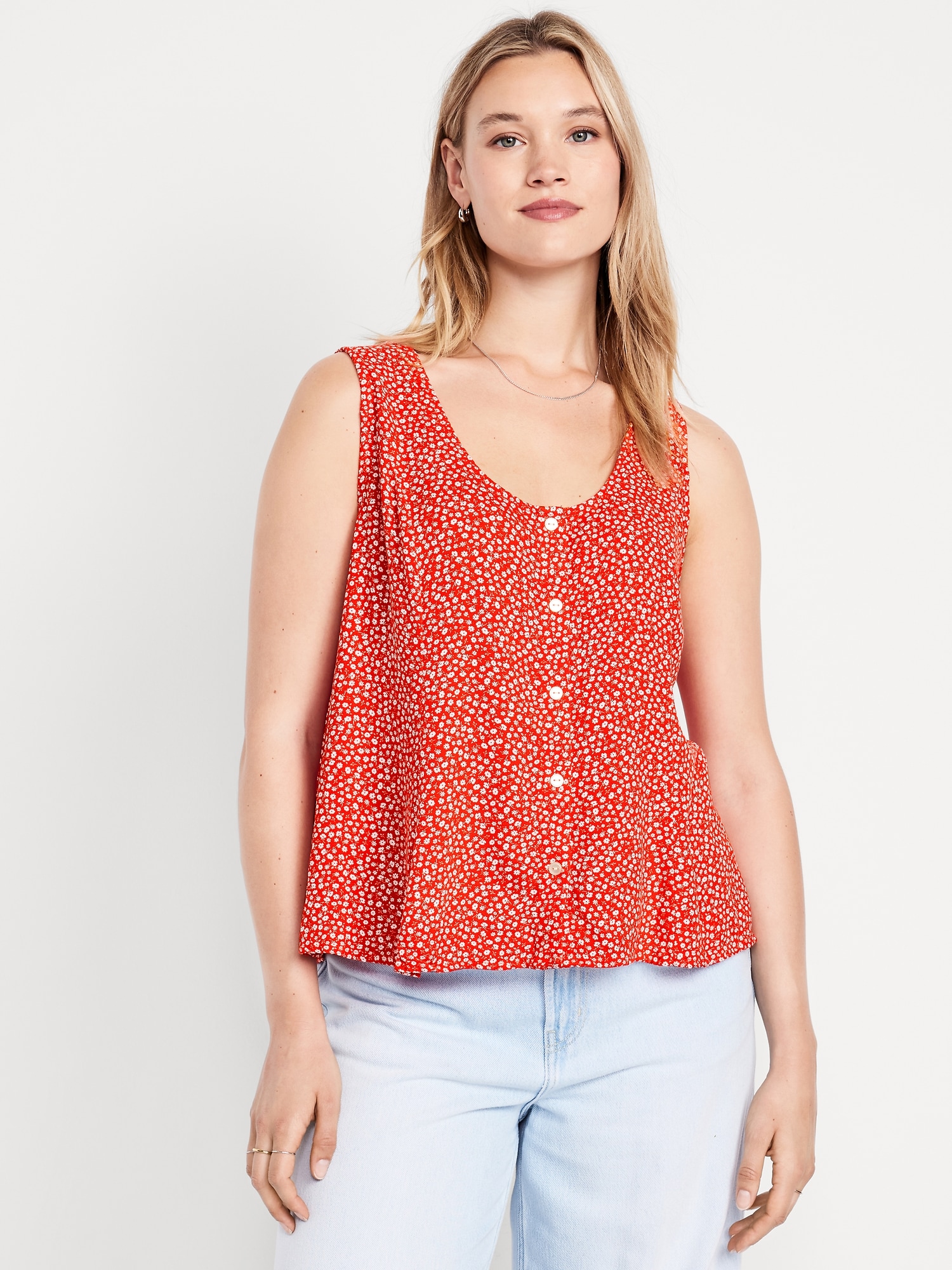 Button-Down Crepe Tank Top: scoop neck, full-button front, princess seams, #804419