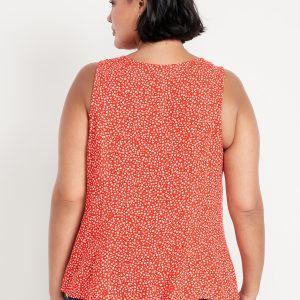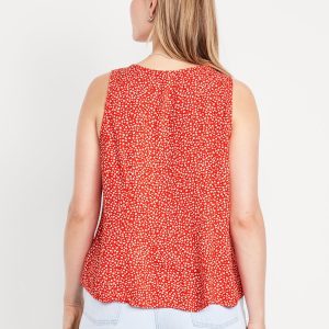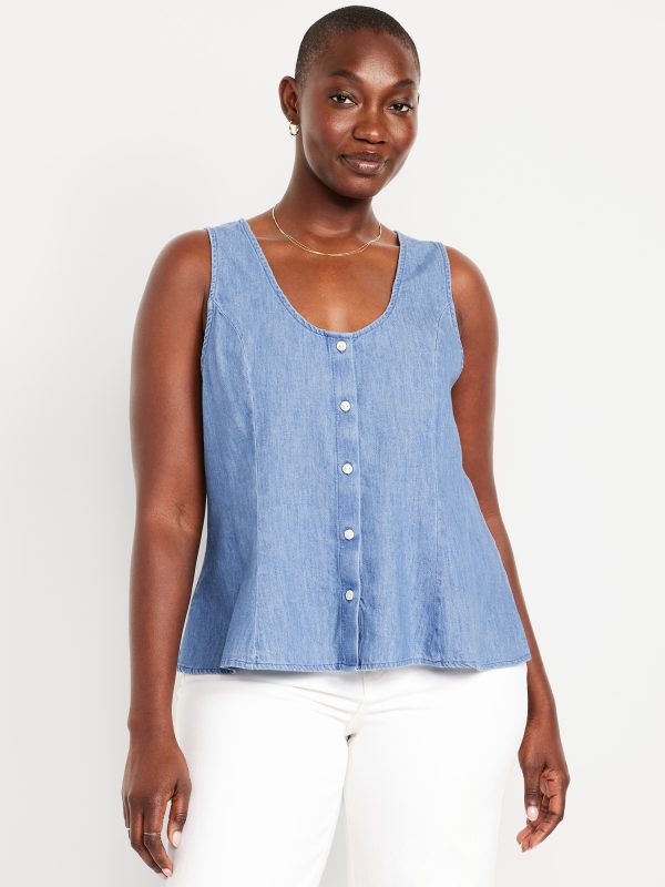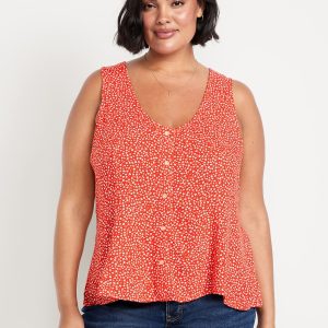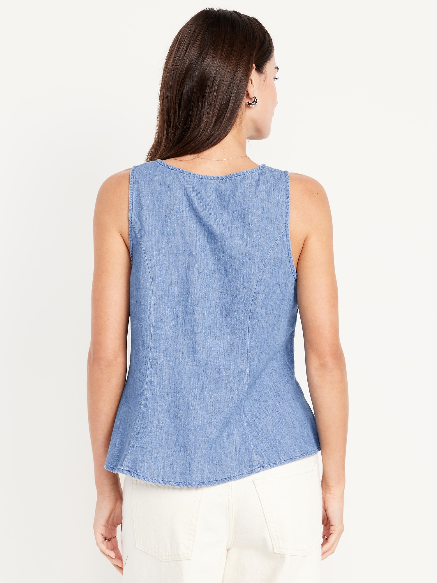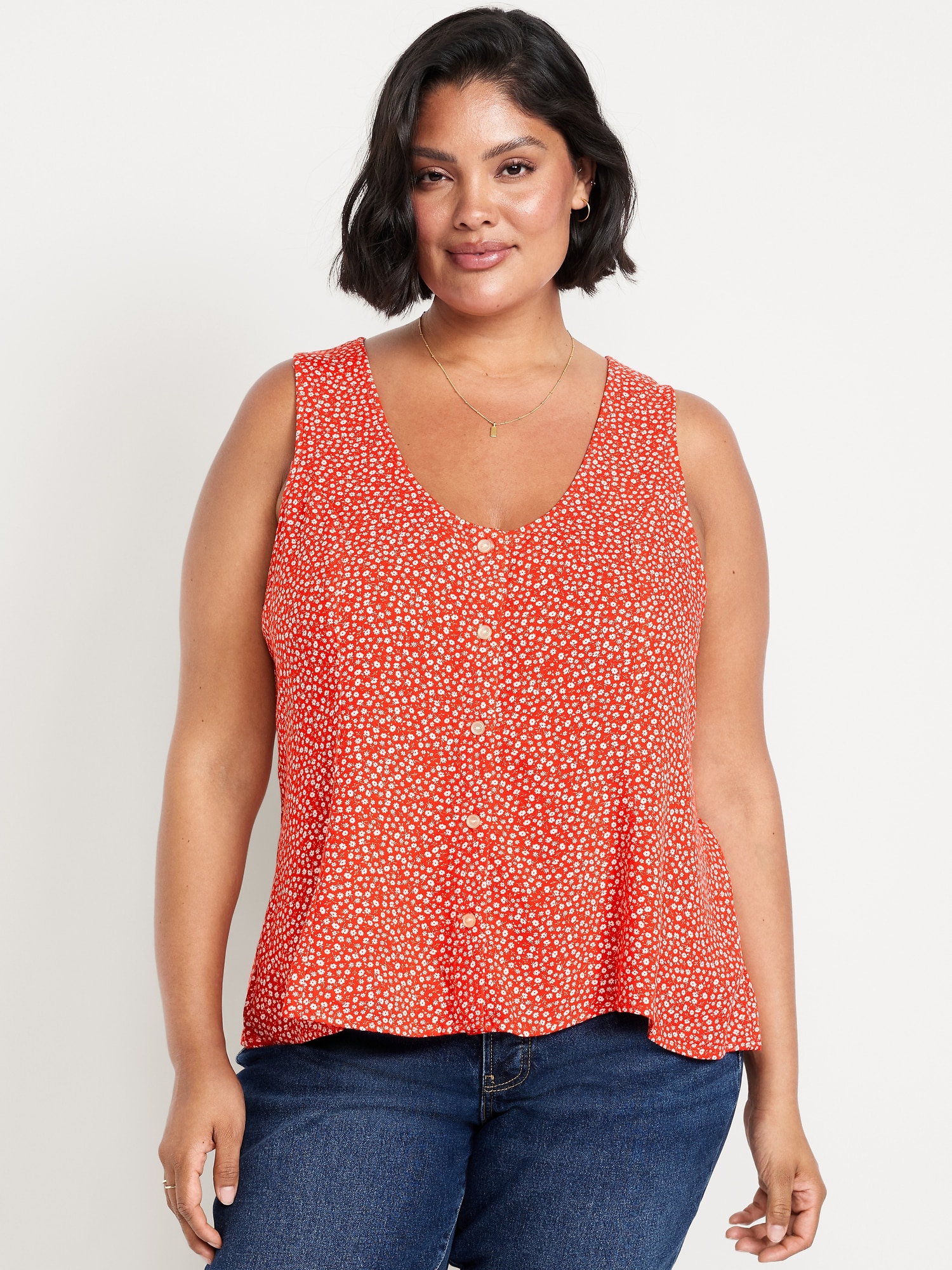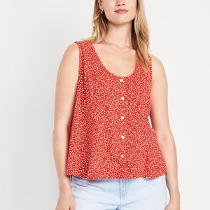 Button-Down Crepe Tank Top: scoop neck, full-button front, princess seams, #804419