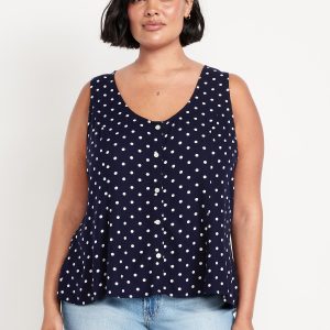 Button-Down Crepe Tank Top: scoop neck, full-button front, princess seams, #804419