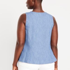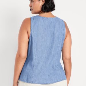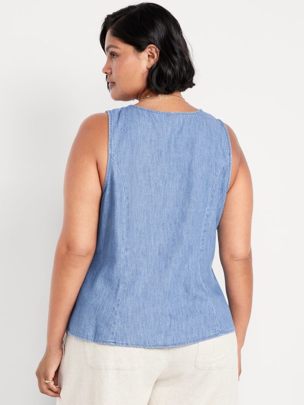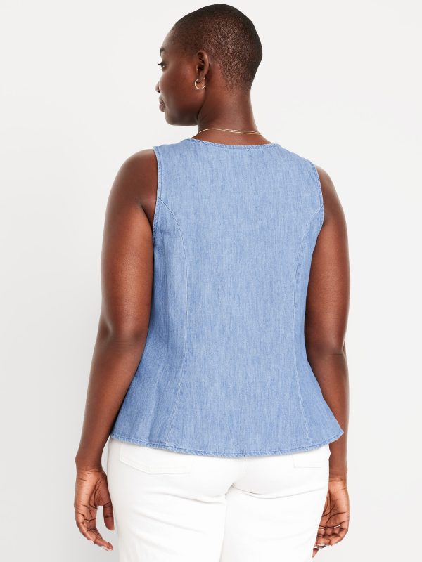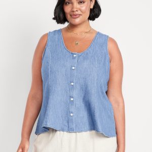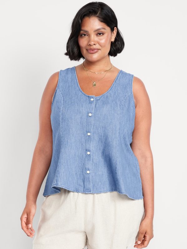 Button-Down Denim Swing Top: scoop neck, full-button front, princess seams, #804419