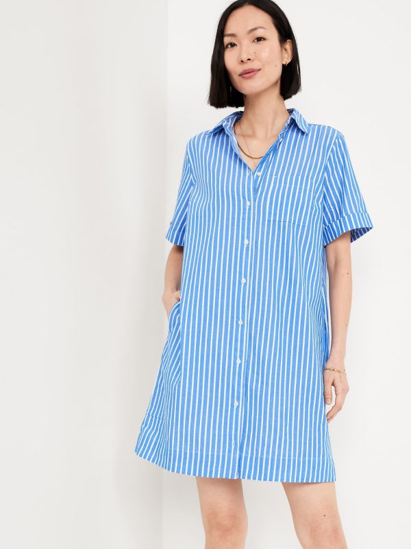 Button-Down Mini Shirt Dress: spread collar, short sleeves, side-seam pockets, patch chest pocket, full-button front, #705355