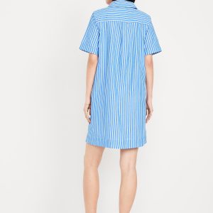 Button-Down Mini Shirt Dress: spread collar, short sleeves, side-seam pockets, patch chest pocket, full-button front, #705355