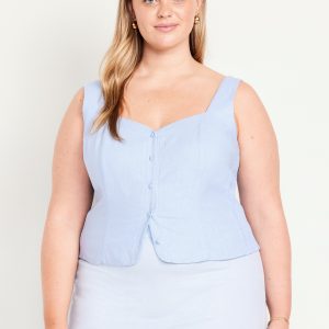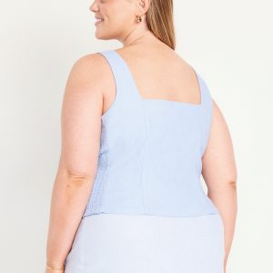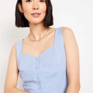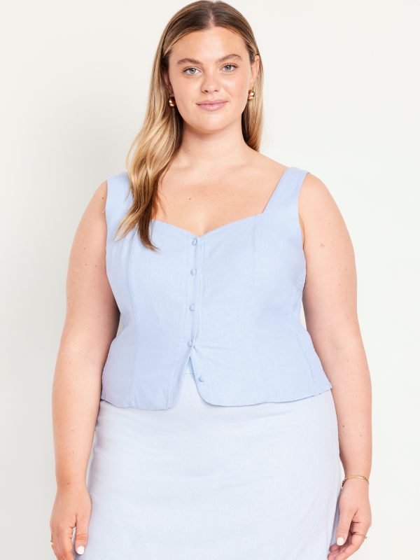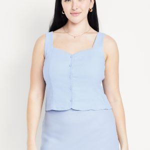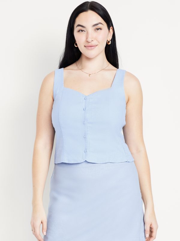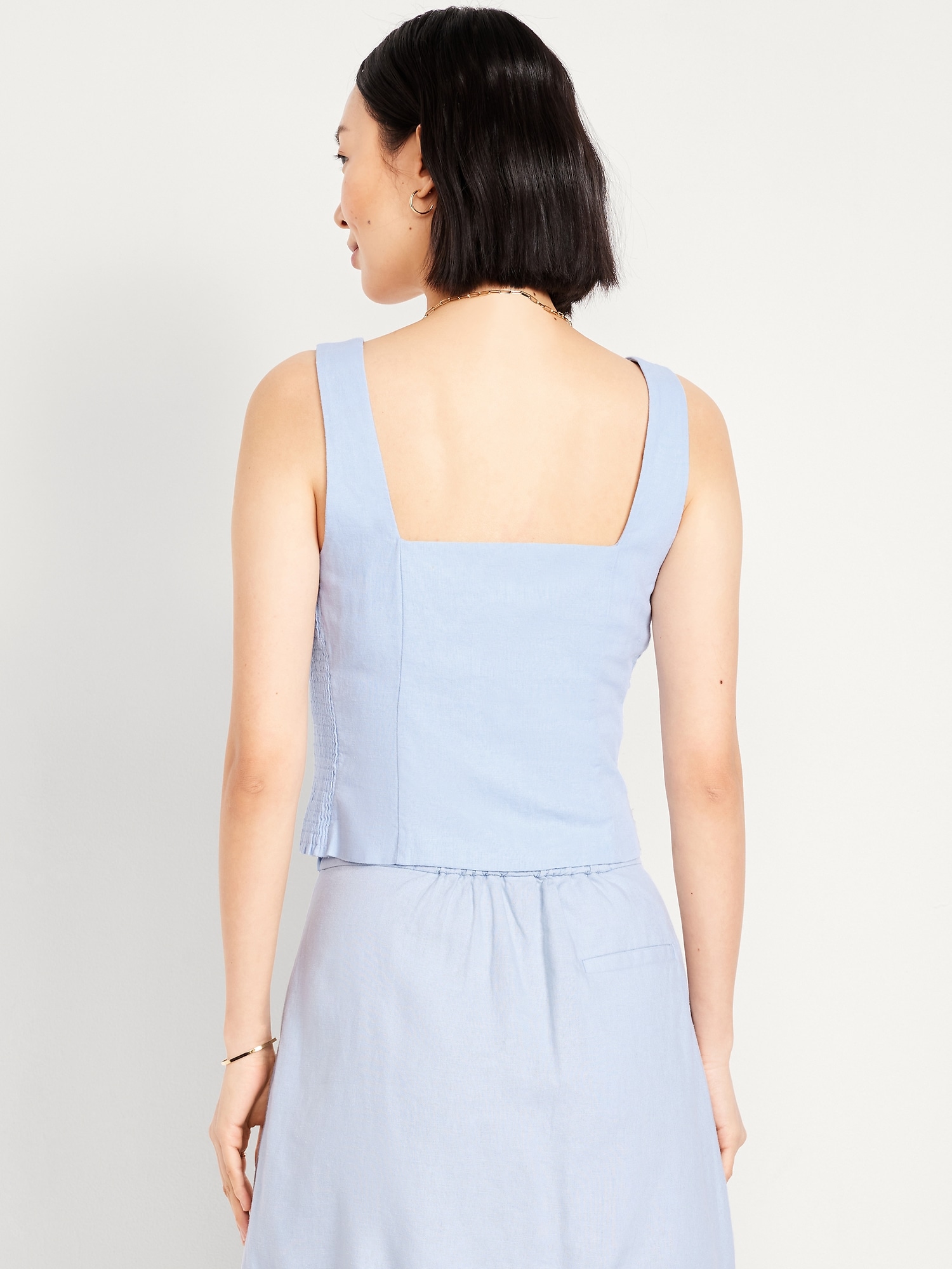 Button-Front Linen-Blend Vest: sweetheart neckline, wide straps, five-button front, smocked side panels, princess seams, #704063