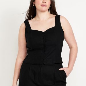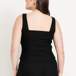 Button-Front Linen-Blend Vest