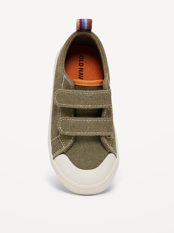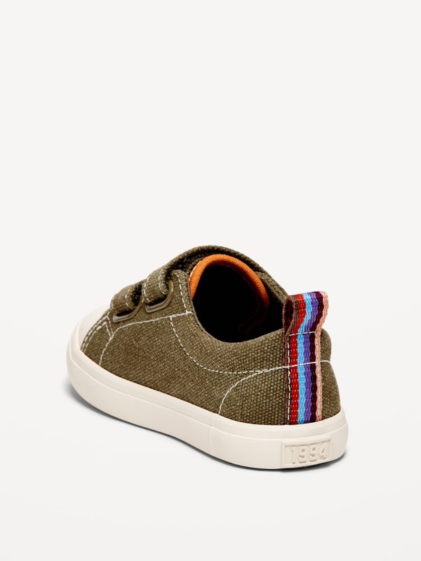 Canvas Double Secure-Strap Sneakers for Toddler Boys: adhesive secure close straps, cushioned foot bed, rubber midsole, pull tab at heel, #722185