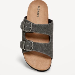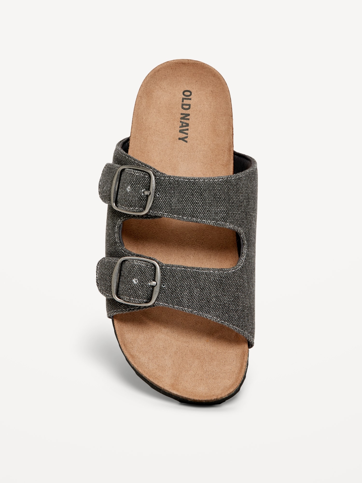 Canvas Double-Strap Sandals for Boys: double buckled straps across foot, faux-cork midsole, cushioned foot bed, #694438