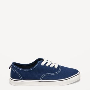 Canvas Lace-Up Sneakers for Boys: cushioned foot bed, contrasting rubber midsole, vulcanized outsole, pull tab at heel, #761658