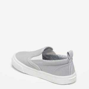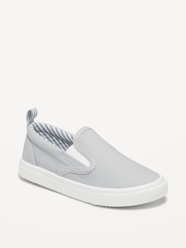 Canvas Slip-On Sneakers for Toddler Boys: webbed-elastic side goring, cushioned insoles, contrasting rubber midsole, flocked outsole, pull tab at heel, #859220