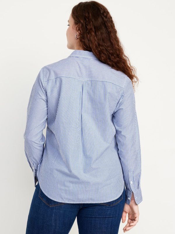 Classic Button-Down Shirt: spread collar, long sleeves, buttoned cuffs, button front, patch chest pocket, curved hem, fading, #576683