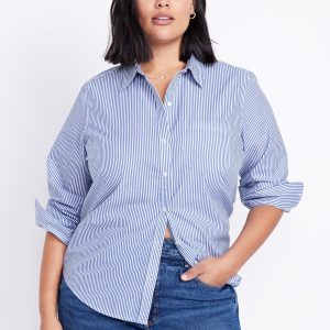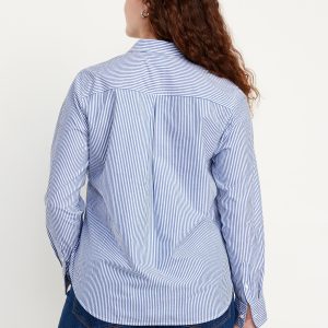 Classic Button-Down Shirt: spread collar, long sleeves, buttoned cuffs, button front, patch chest pocket, curved hem, fading, #576683