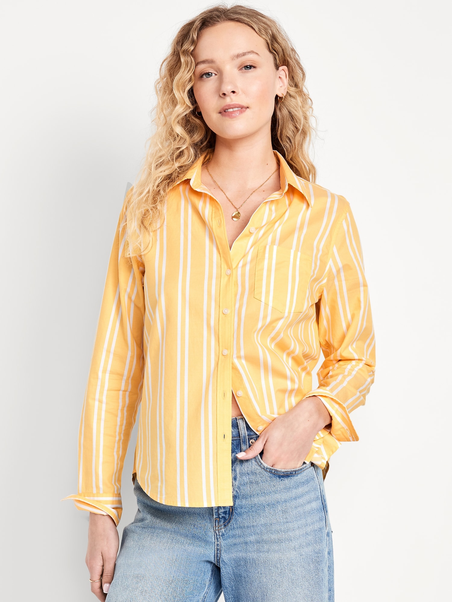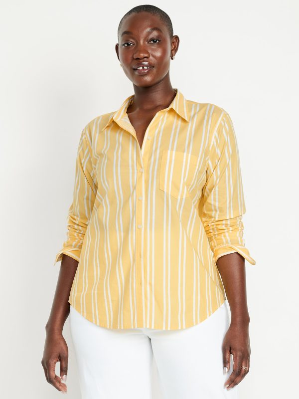 Classic Button-Down Shirt: spread collar, long sleeves, buttoned cuffs, button front, patch chest pocket, curved hem, fading, #576683