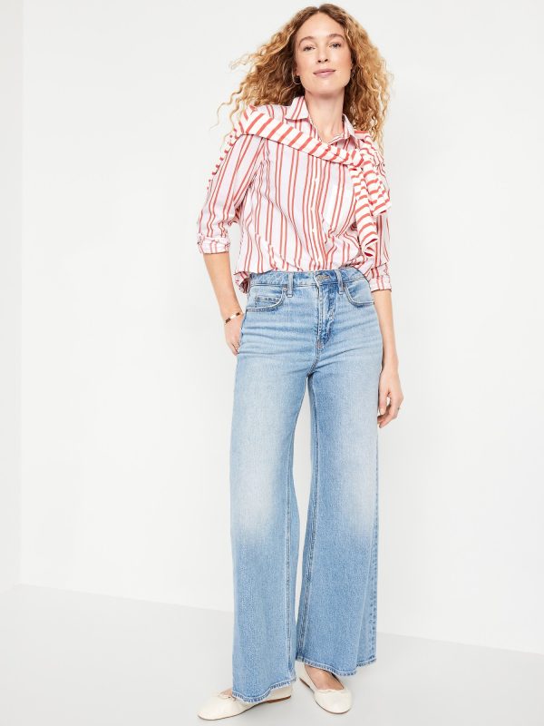 Classic Button-Down Shirt: spread collar, long sleeves, buttoned cuffs, button front, patch chest pocket, curved hem, fading, #576683