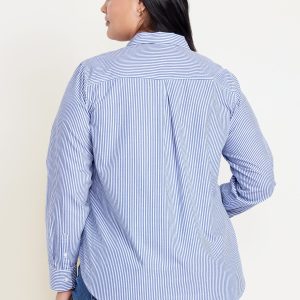 Classic Button-Down Shirt: spread collar, long sleeves, buttoned cuffs, button front, patch chest pocket, curved hem, fading, #576683