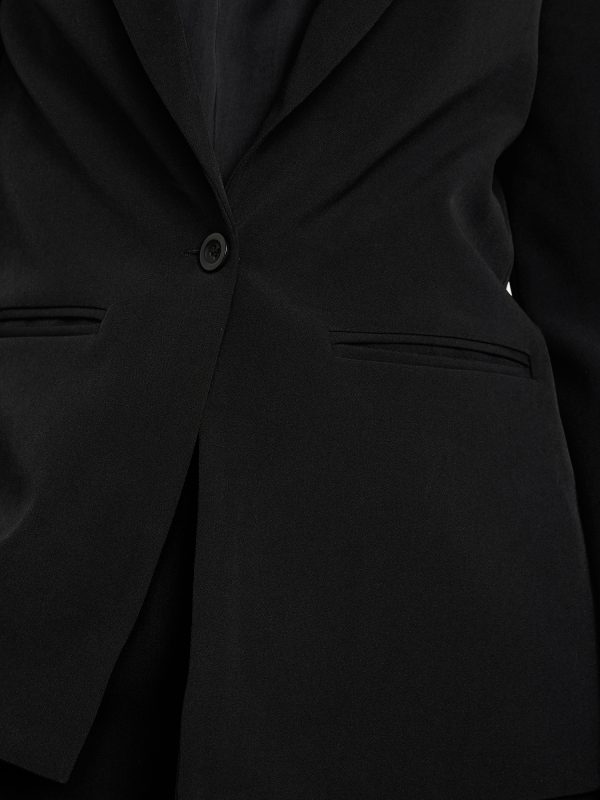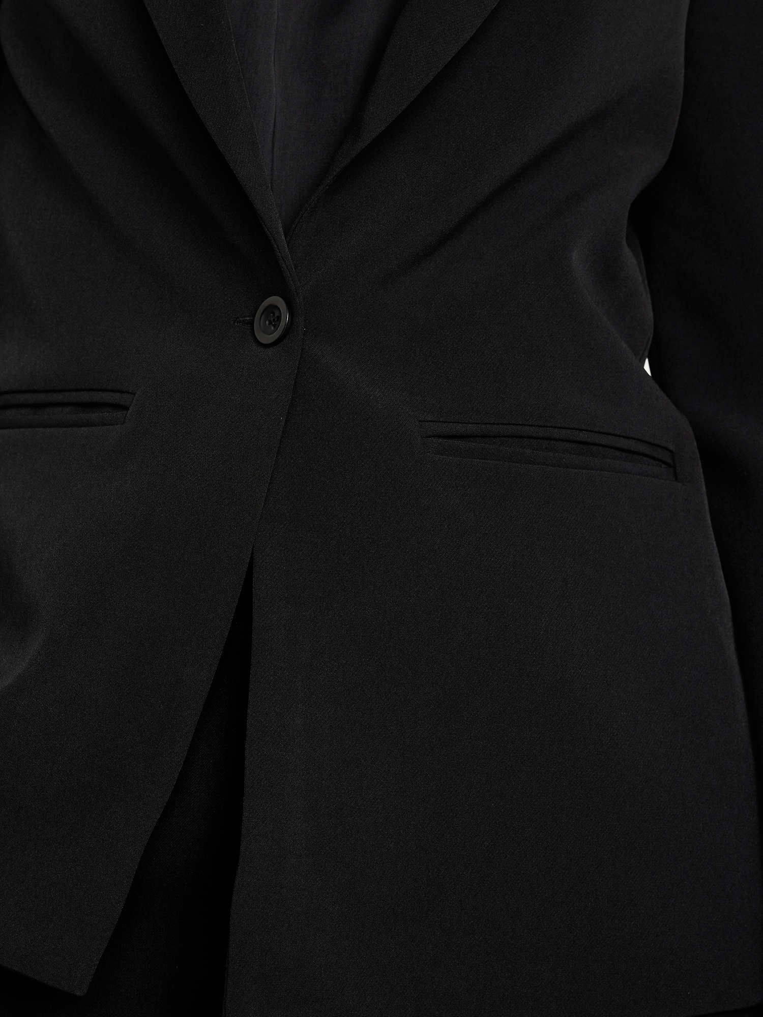 Classic Double-Weave Blazer: notched lapel, long sleeves, single-button front, welt pockets, fully lined, #766312